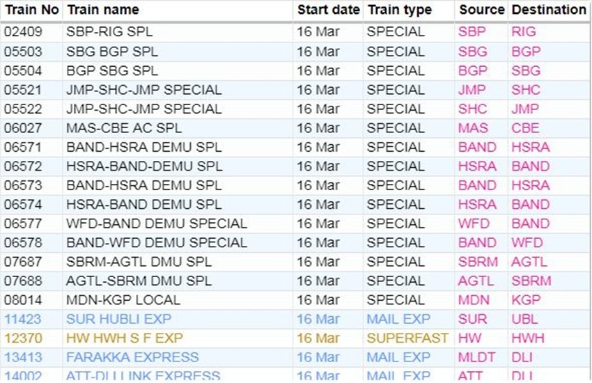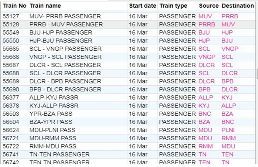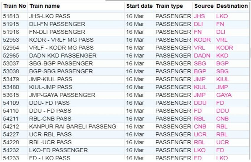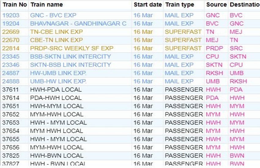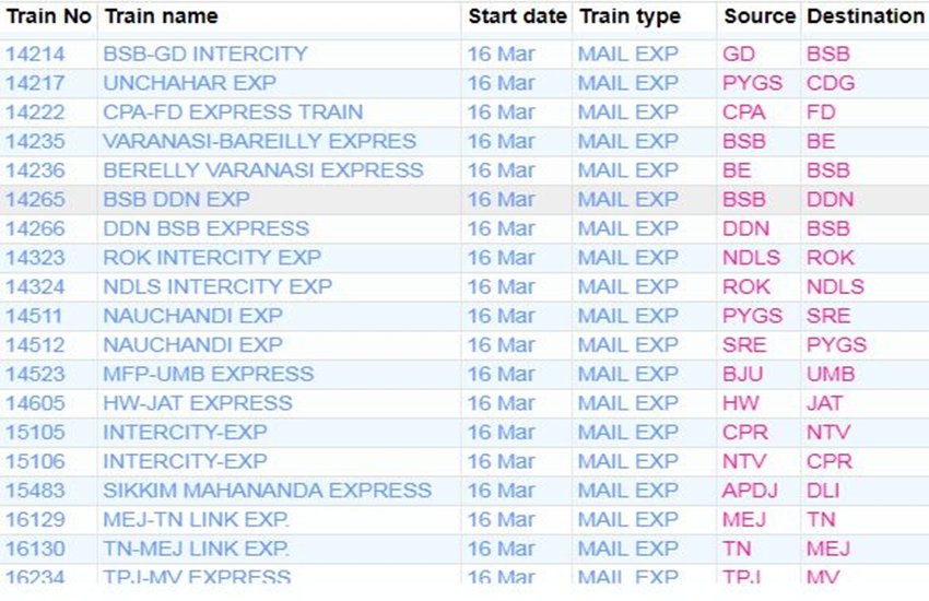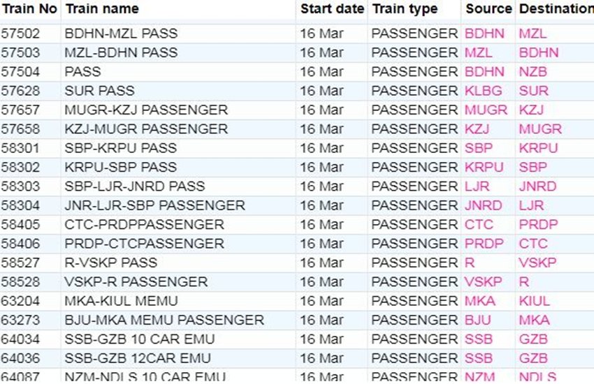 For your comfort, we’re sharing the list of some main trains. In the list, you’re going to get info like canceled prepare quantity, title and prepare route. If you would not have a prepare on this list, then you might be right here Click By doing this, you may get complete info of the railway in your cellular.