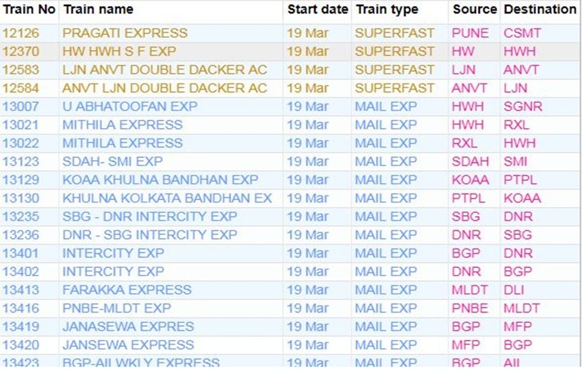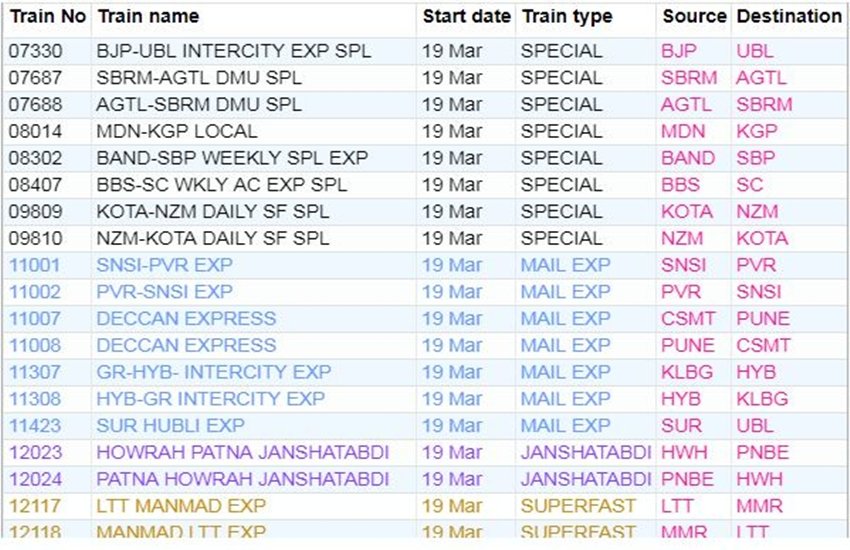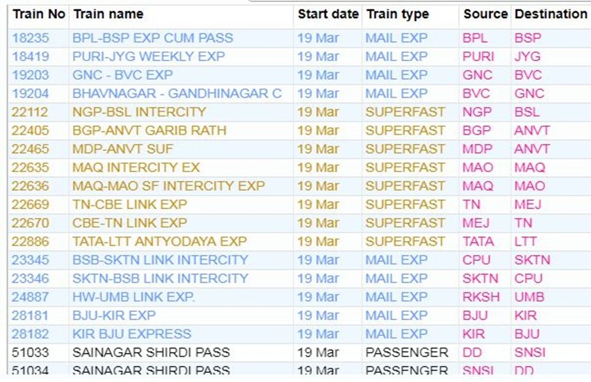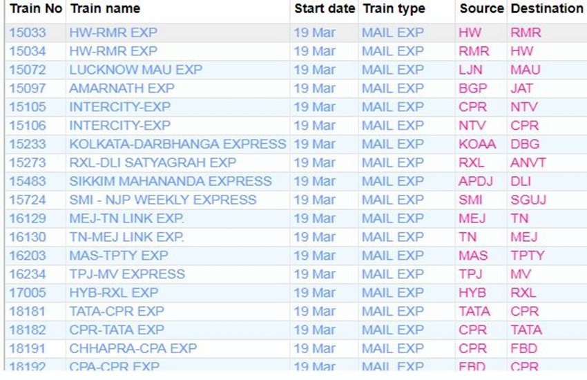 For your comfort, we’re sharing the list of some main trains. In the list, you’re going to get data like canceled practice quantity, title and practice route. If you do not have a practice on this list, then you definately By clicking right here You can get complete data of the railway in your cellular.